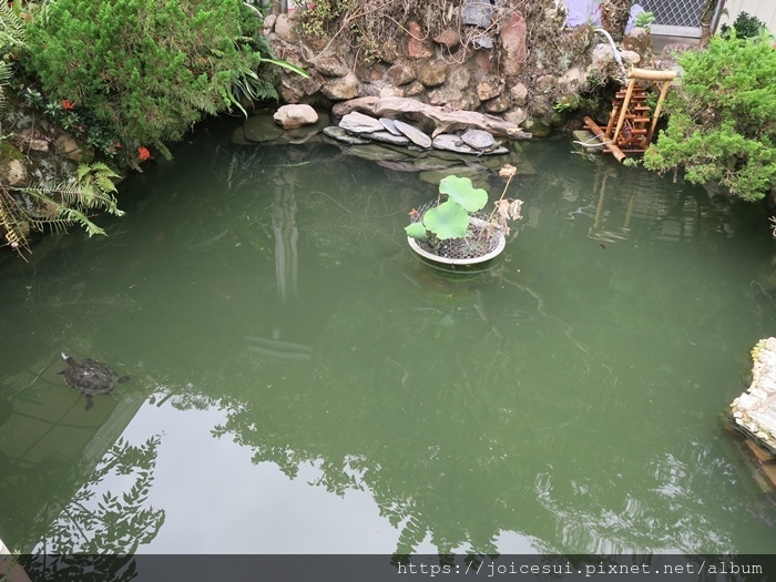 旁邊有個小小的池塘,有龜龜在游泳也有龜龜在曬太陽。