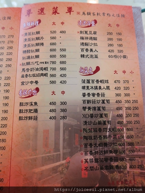 雖然價錢高了一些,但真心覺得不錯,會想推薦給喜歡吃合菜的長輩們或是一大群人一起出遊的夥伴^^