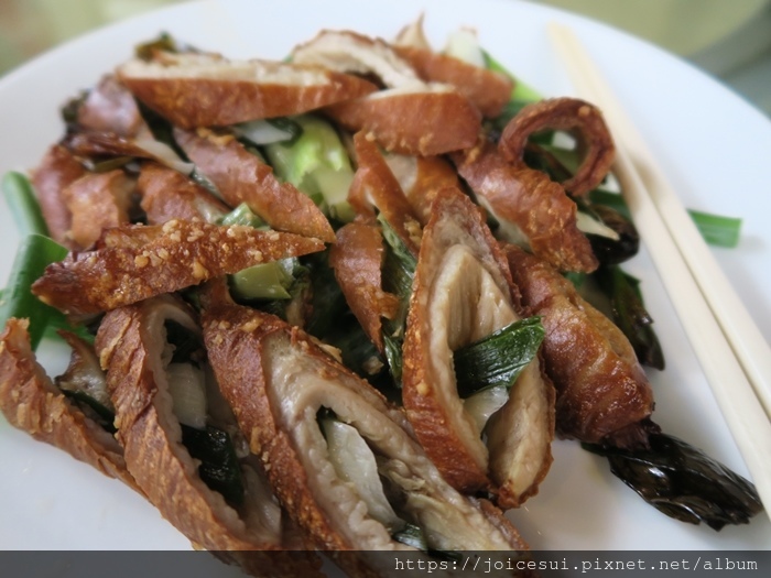 酥炸肥腸(大) 480元,肥腸很好吃,不過裡頭包的蔥(還是蒜?)滿少的,雖然我不愛蔥,但因為肥腸很油,