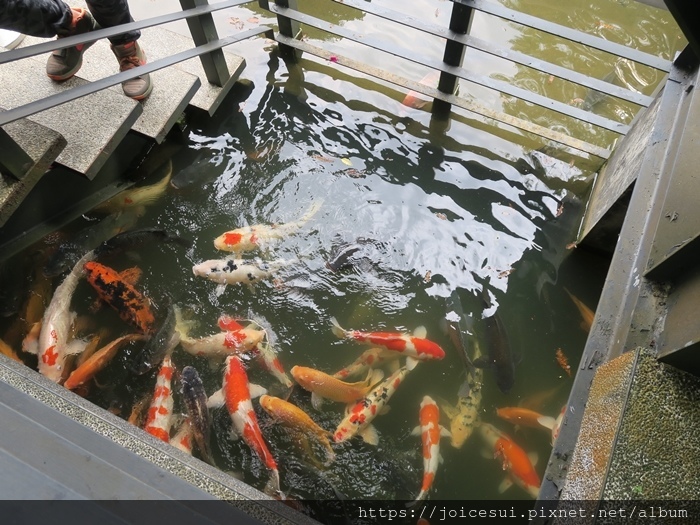 有個階梯區離水邊很近,可以近距離餵魚,小米和小樂都很愛,但要注意安全喔。