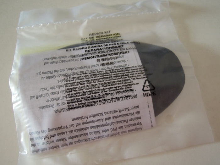 還附了修補片,約7X7公分,如果真的有小破洞,就可以派上用場了,所以請不要不小心把它丟了!
