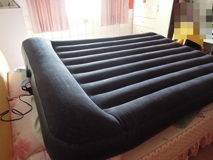 我們買了"INTEX"牌的高級植毛空氣床