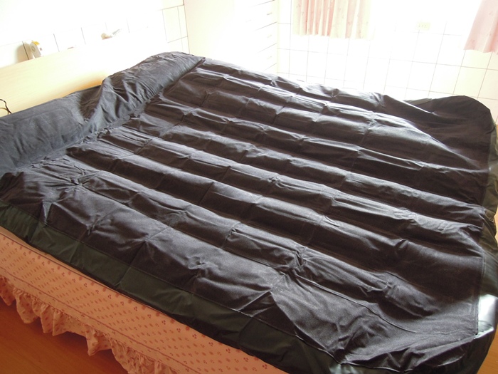 登愣! 展開後就是這樣啦,這一條一條的是獨立氣室結構,躺在上面,旁邊的人翻身真的沒什麼感覺也,