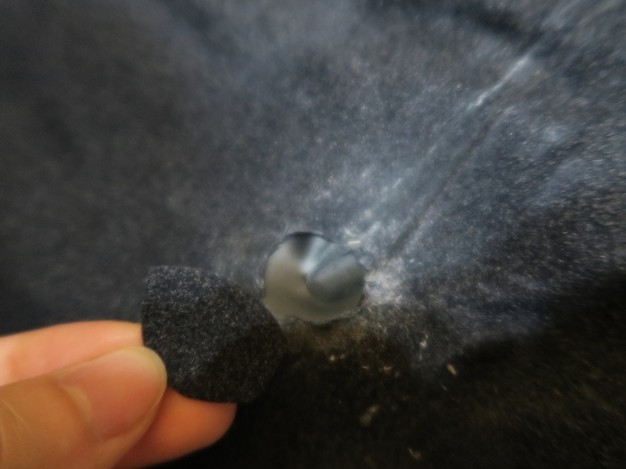 破洞的地方超尷尬,就床枕和床的交會處,而且是超角落!